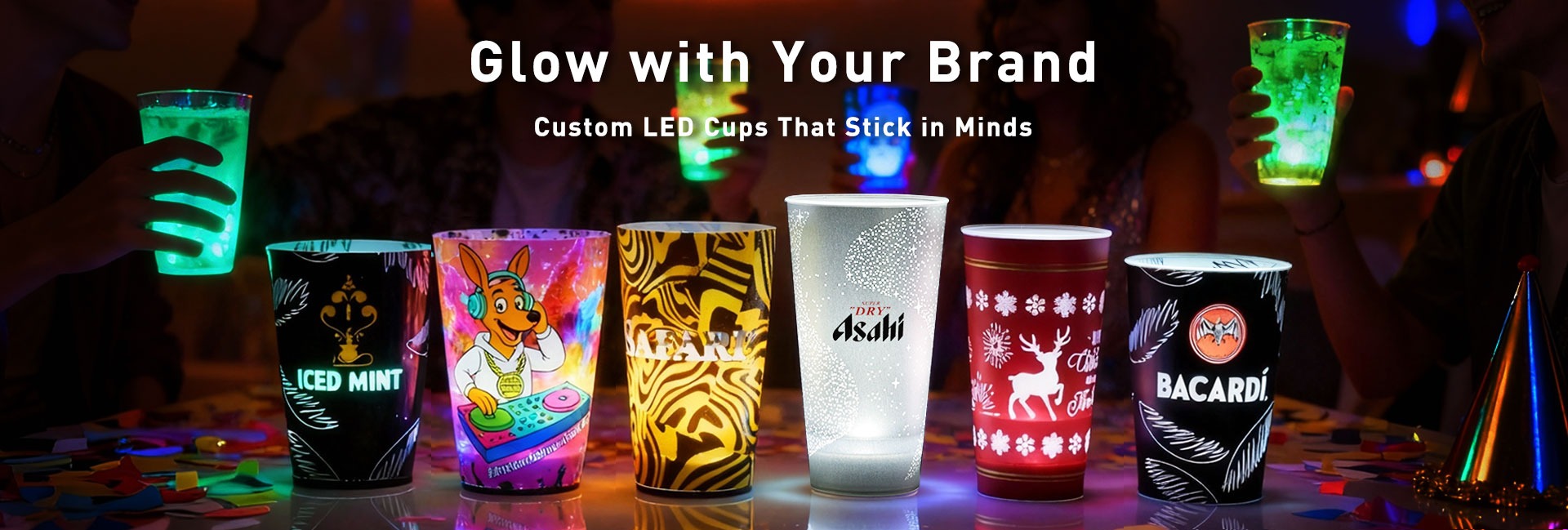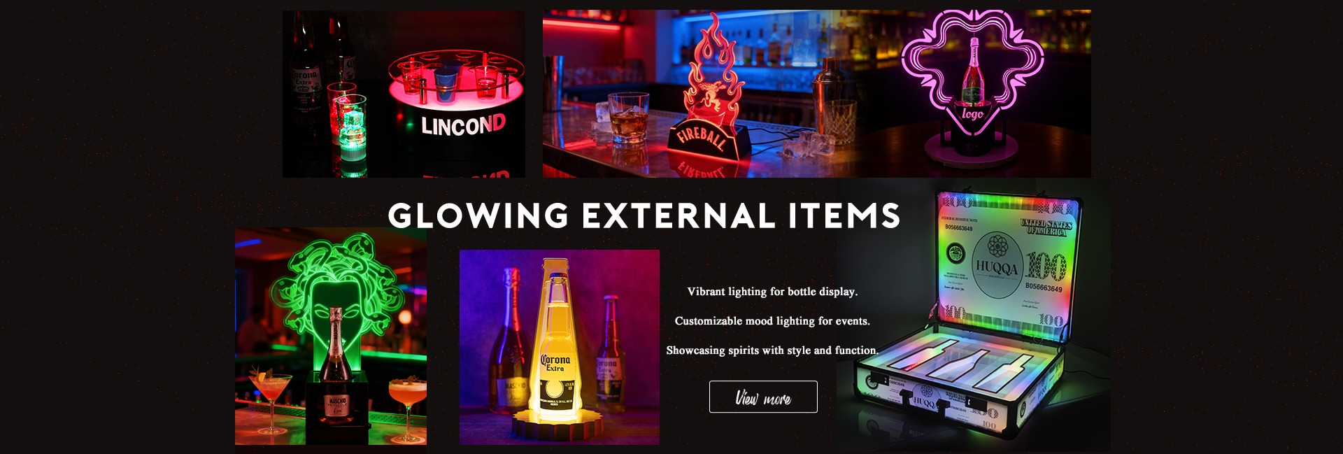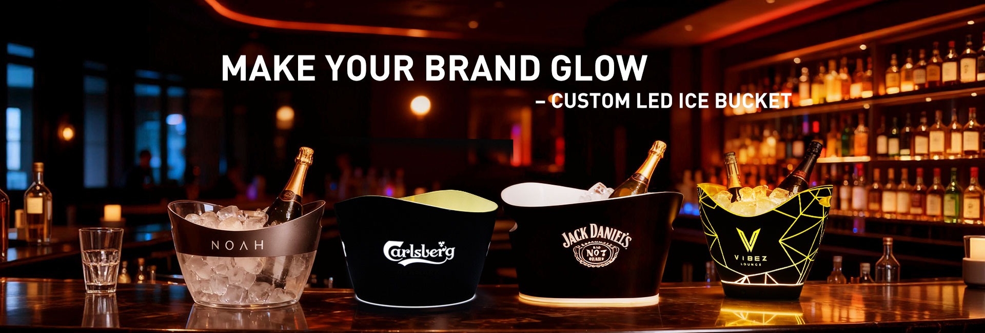 Sản Phẩm chính: Xô đá, chai nhãn dạ quang, glorifier, màn hình LED, nến LED